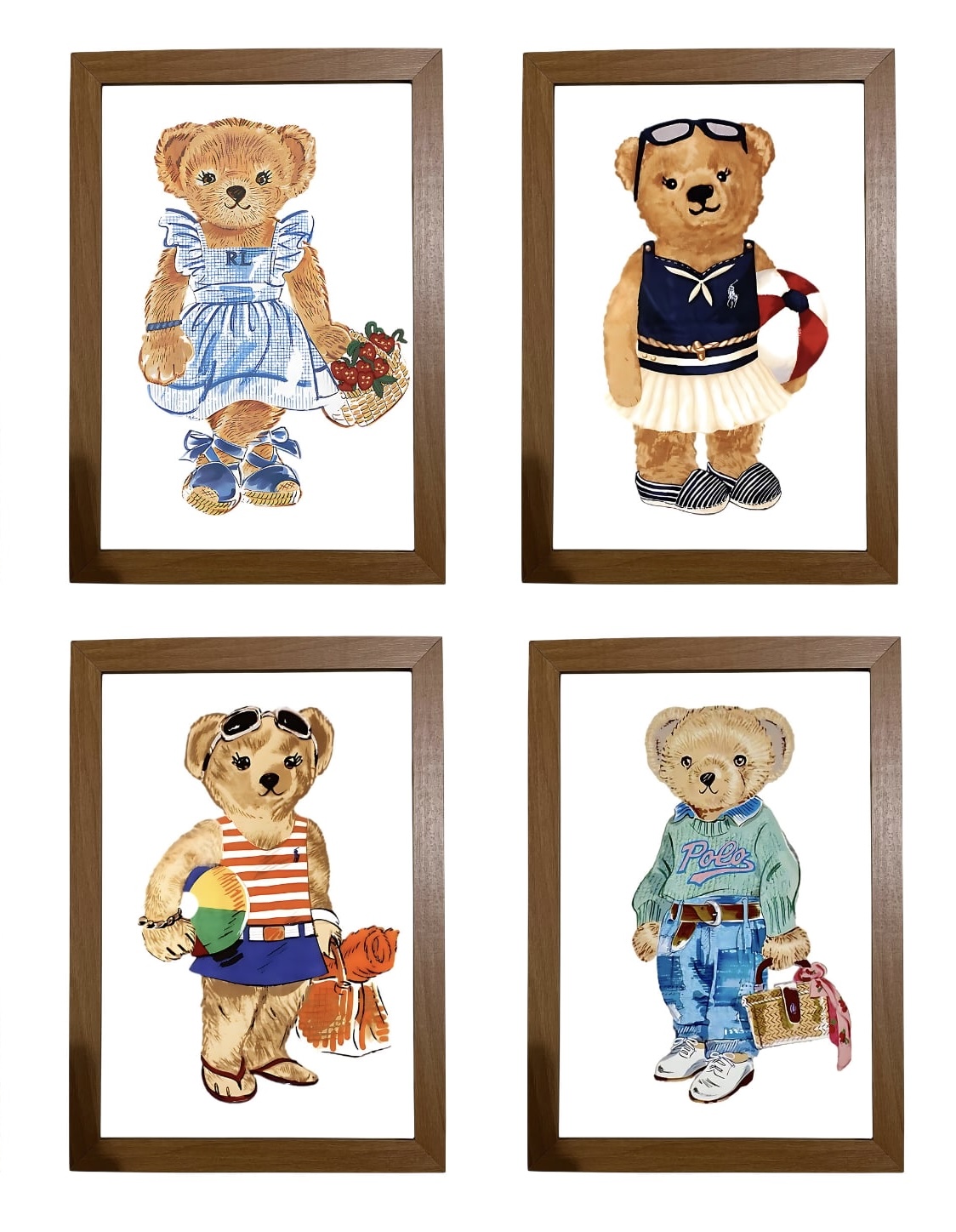 Kit quadro decorativo ursa esporte RL polo rauph lauren quarto criança bebê menina