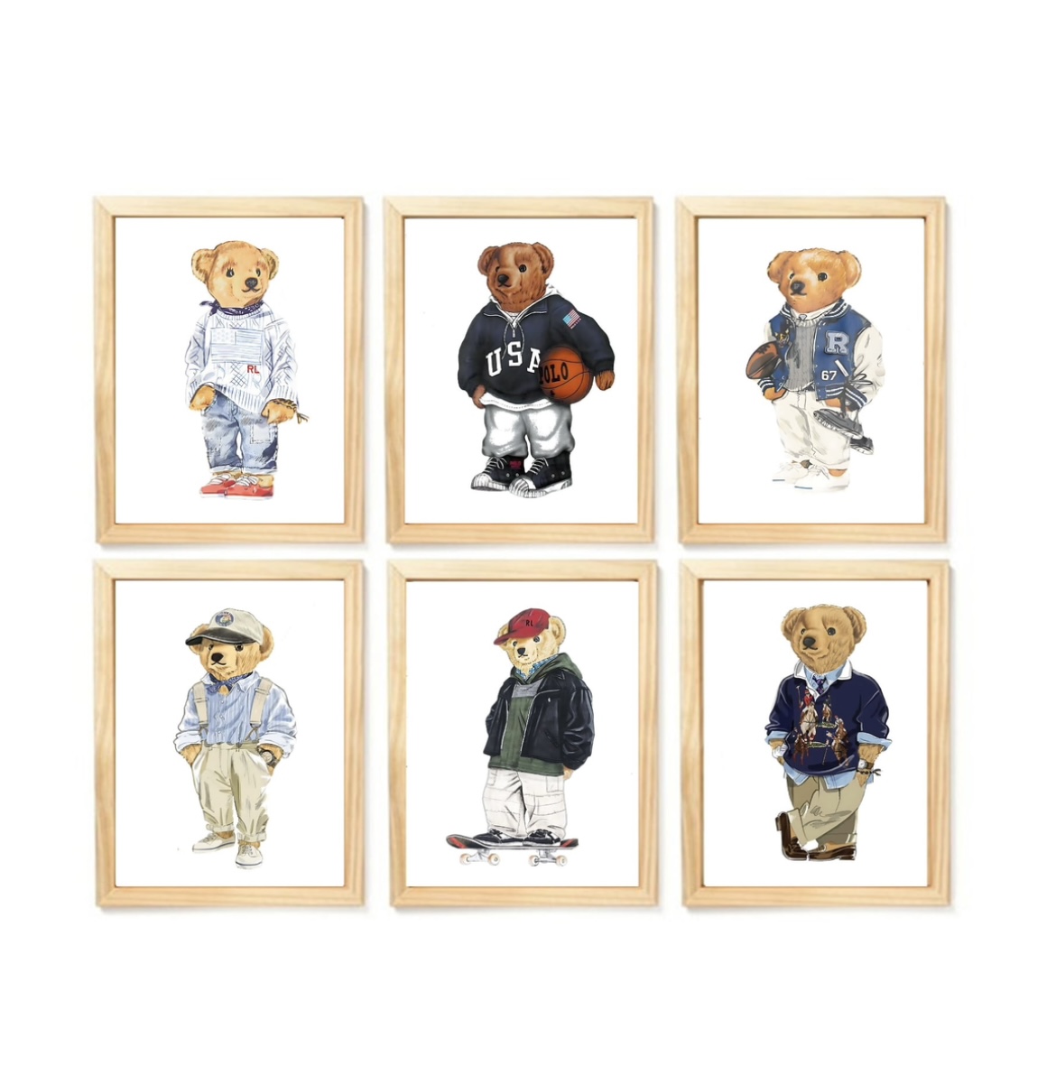 Kit quadro decorativo urso esporte RL polo rauph lauren quarto criança bebê enxoval