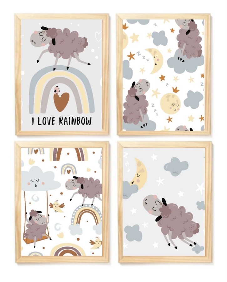 Kit quadro decorativo infantil safari ovelhinhas arco íris quarto criança bebê