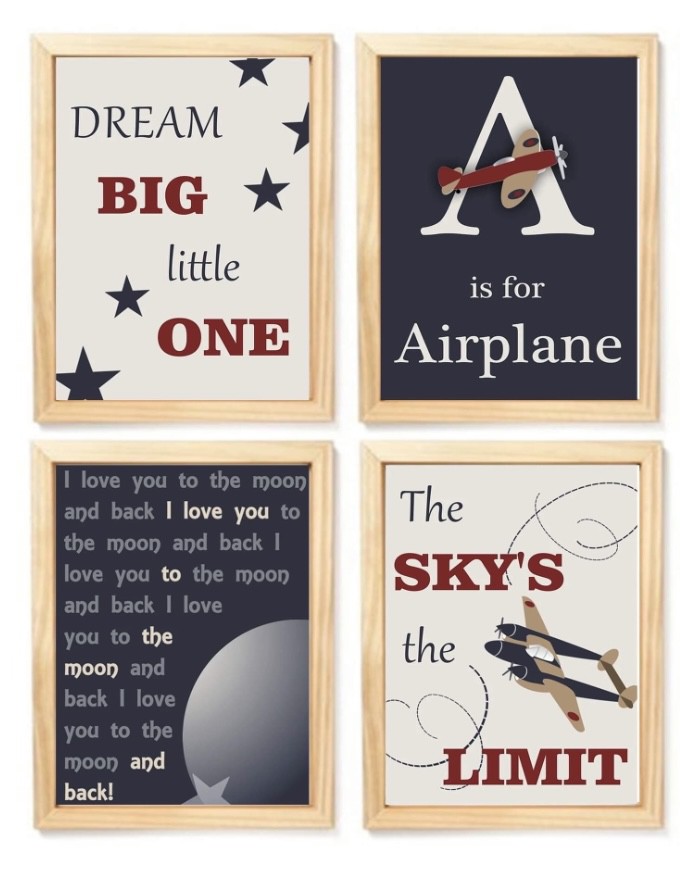 Kit quadro infantil decorativo aviação quarto criança bebê enxoval