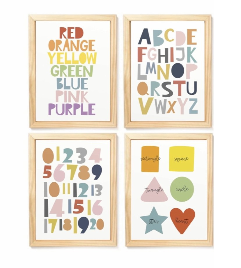 Kit quadro alfabeto números e formas decorativo infantil quarto criança bebê enxoval