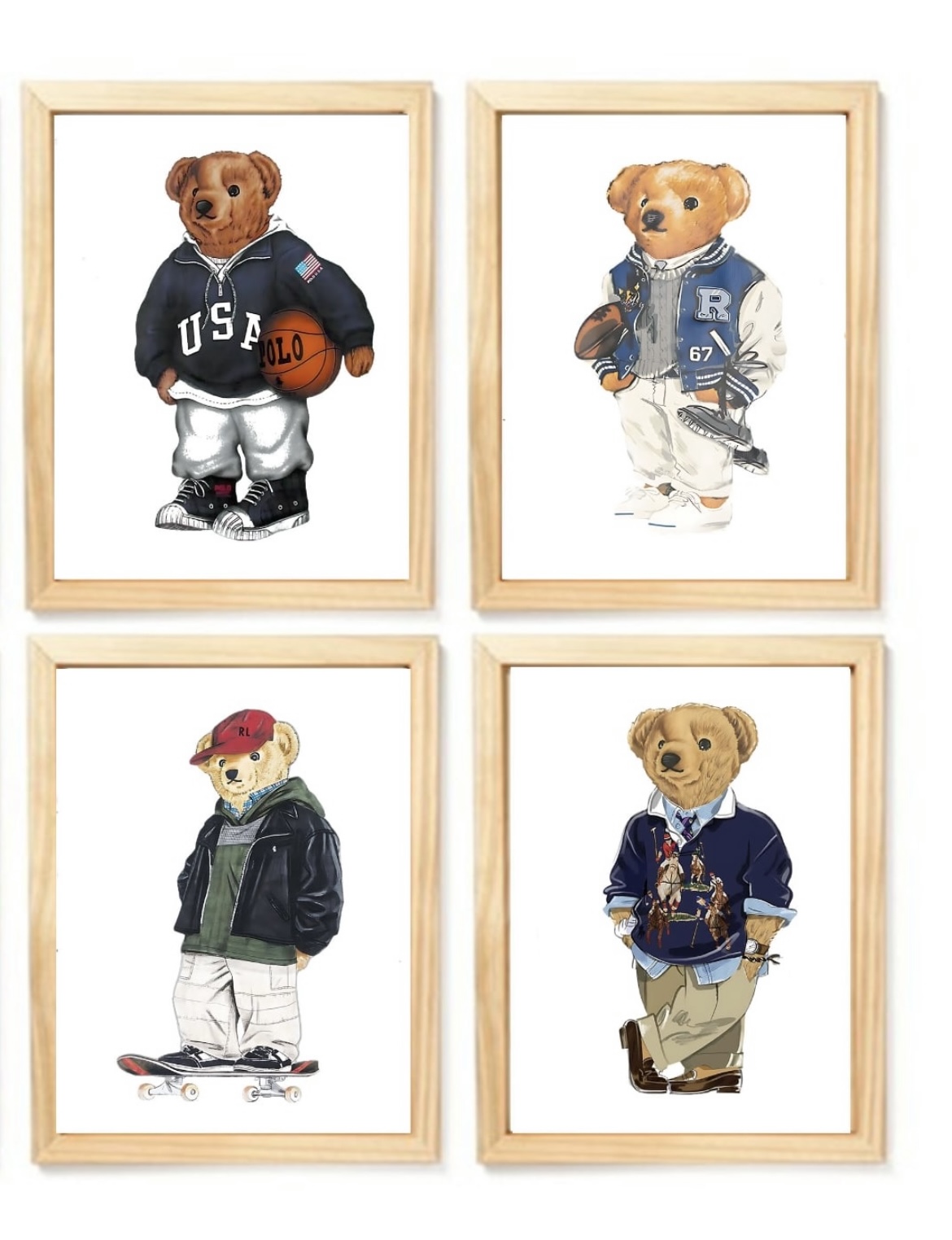 Kit quadro decorativo esporte urso RL polo rauph lauren quarto criança bebê enxoval