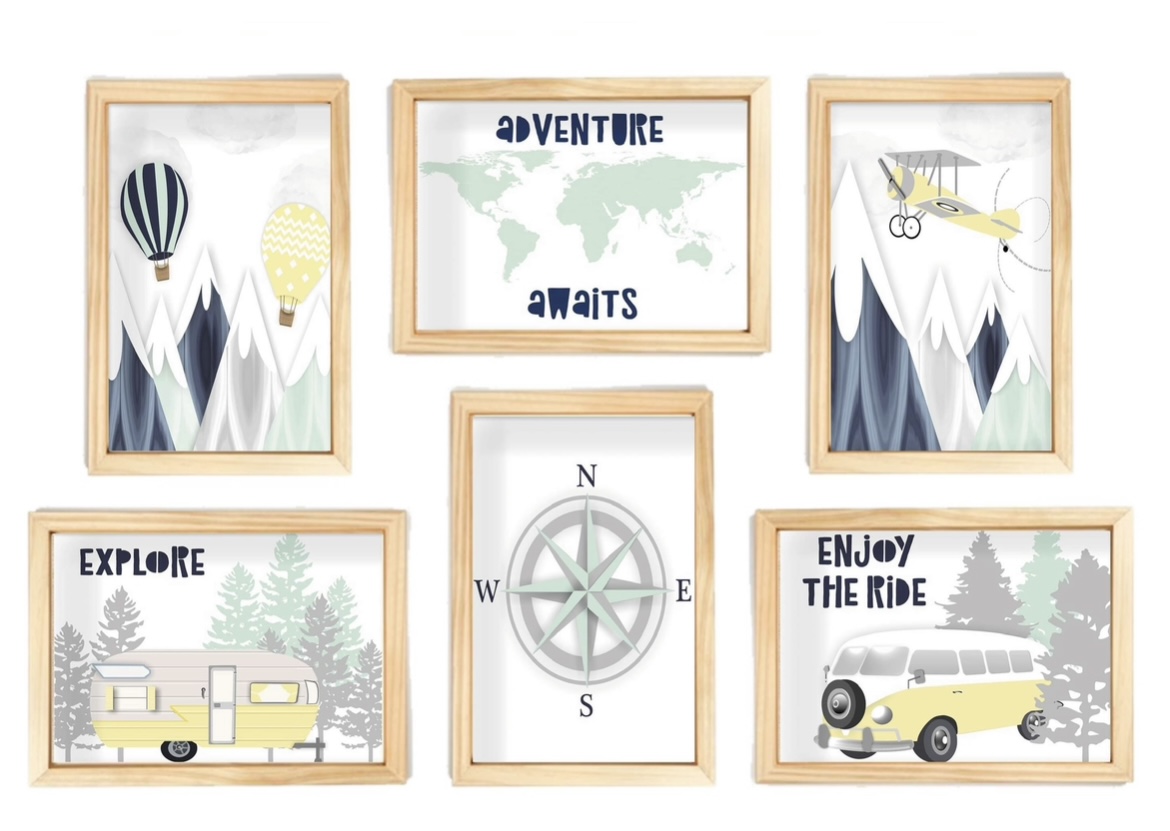 Kit com 6 quadros tamanho 33x23x1,0 Completo decorativo com vidro, moldura , fundo , pendurador e impressão em alta resolução no papel fotográfico *Foto ilustrativa do produto , os tons das cores podem variar monitor x impressão!!!